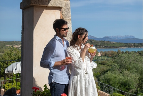 Concediti un aperitivo romantico con vista unica sulla Baia di Cala di Volpe.
