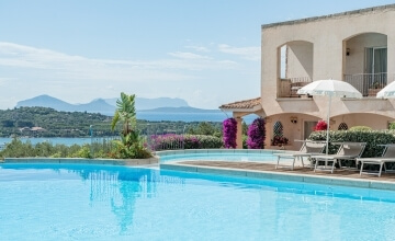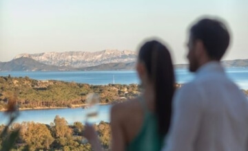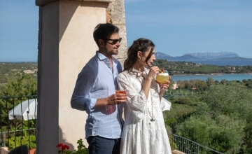 Die Junior Suite Petra bietet eine atemberaubende Aussicht: Auf der einen Seite können Sie die wunderschöne Bucht von Cala di Volpe bewundern, auf der anderen Seite können Sie sich in der privaten Lounge mit Blick auf den Hotelpool entspannen.