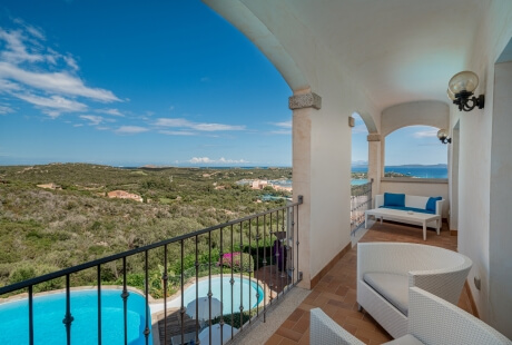 The Petra Suite offers a comfortable terrace, furnished with an elegant sitting area, looking over the pool and boasts a breath-taking view of the beautiful Cala di Volpe bay.
