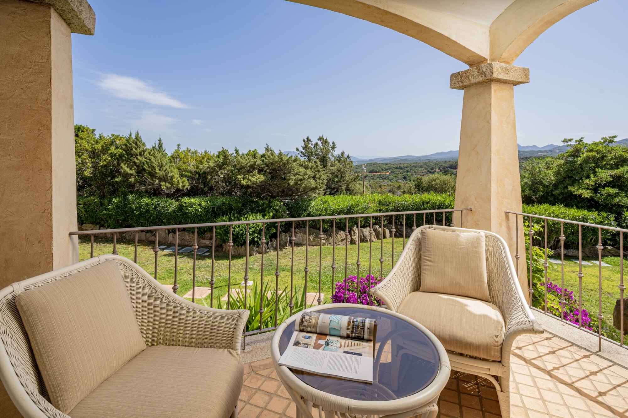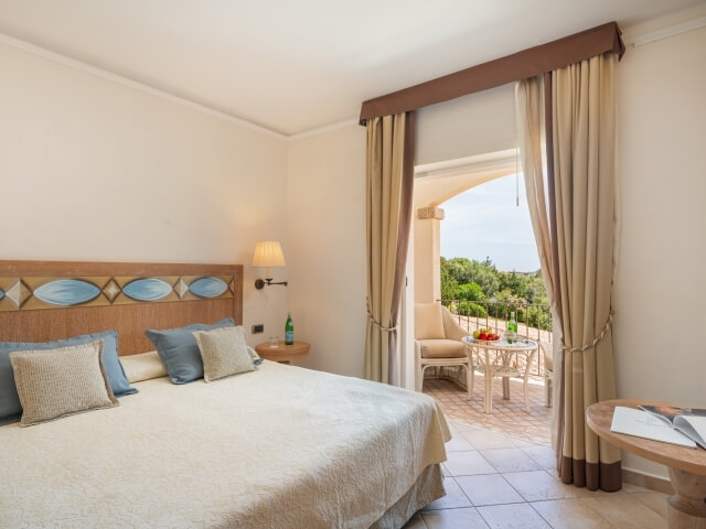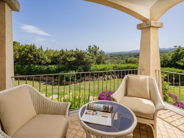 Le mobilier intérieur se fond dans le style traditionnel, tandis que l'extérieur dispose d'un balcon ou d'un petit patio privé, équipé de fauteuils et d'une petite table, pour profiter de moments de détente en toute intimité.