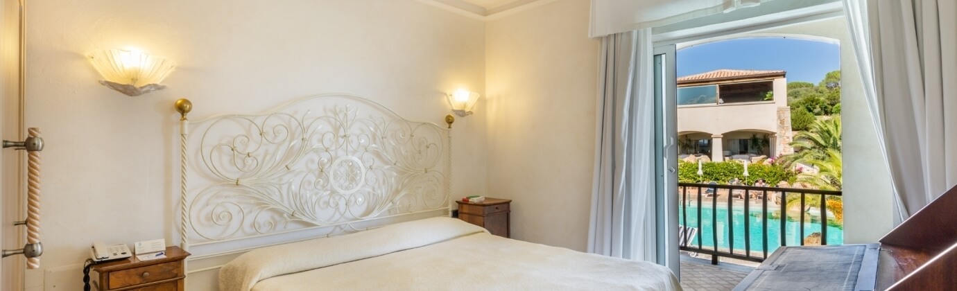 La Junior Suite Petra vanta un panorama mozzafiato: da un lato è possibile ammirare la splendida baia del Cala di Volpe e dall’altra parte è possibile passare dei momenti di relax nel salottino privato che affaccia sulla piscina dell’Hotel.