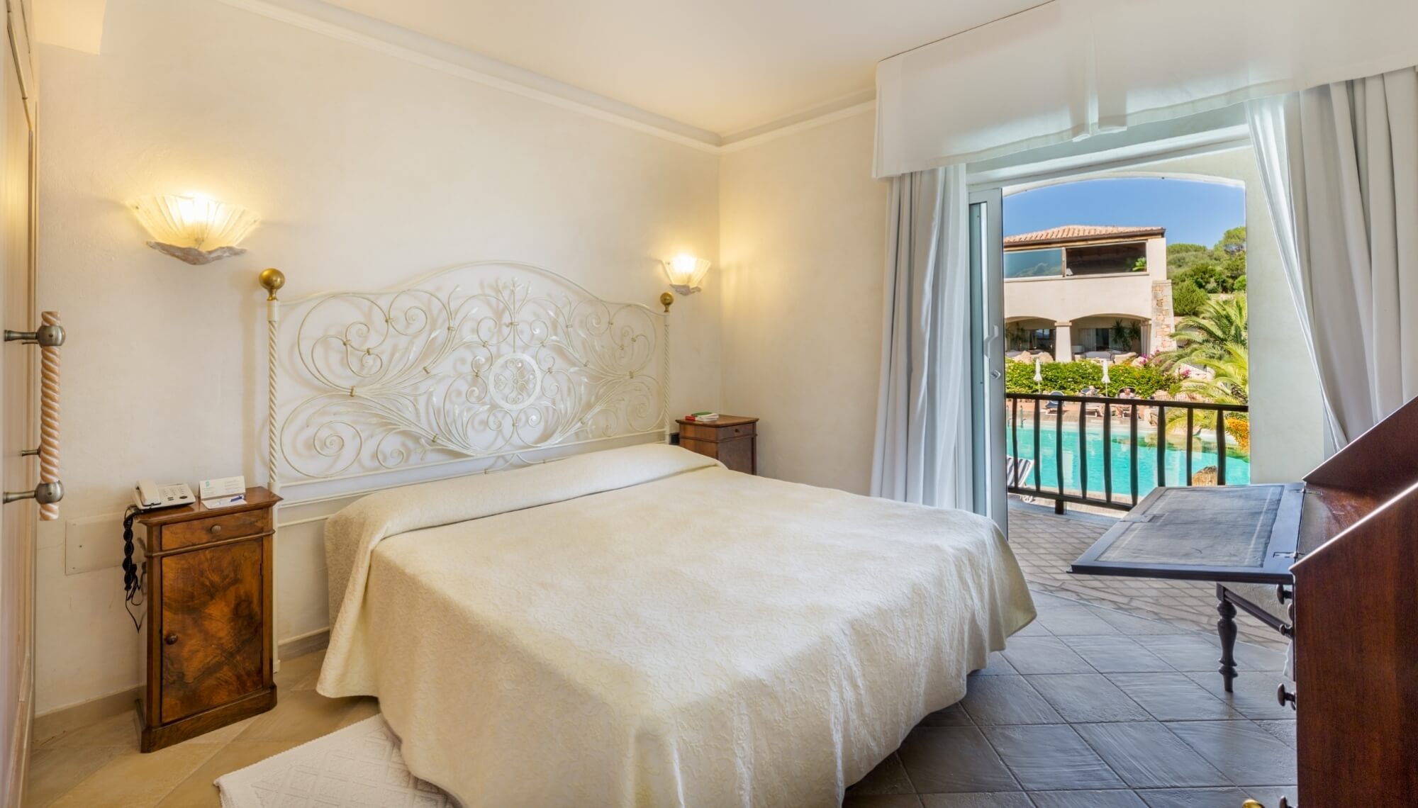 La Suite Executive dispone di un'accogliente terrazza privata, arredata con un elegante salottino, che affaccia sulla piscina e offre una vista mozzafiato sulla baia del Cala di Volpe.